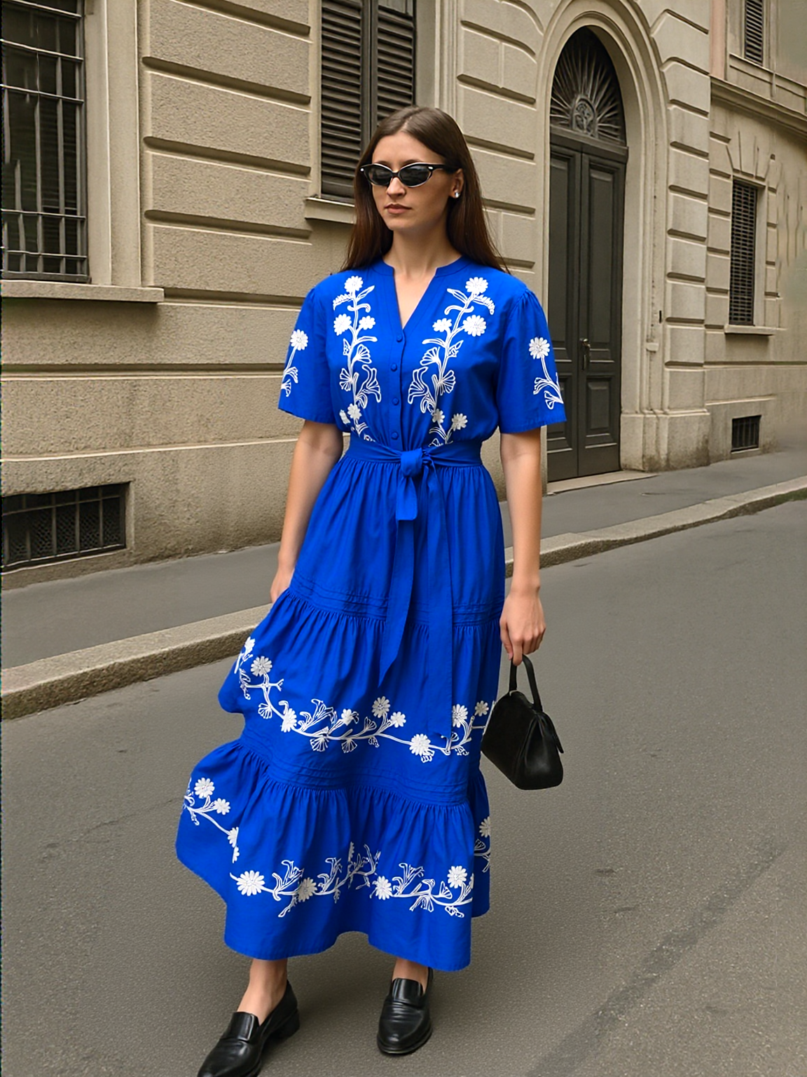As bold as the sea on a bright summer day, Love dress brings out our inner confidence and ability to be alongside the stillness of nature and calm seas. Embroidered with a stunning easy to wear design which features buttons, a belted waist, and short sleeves. You won't want to wear anything else on those sweet smelling summer days.